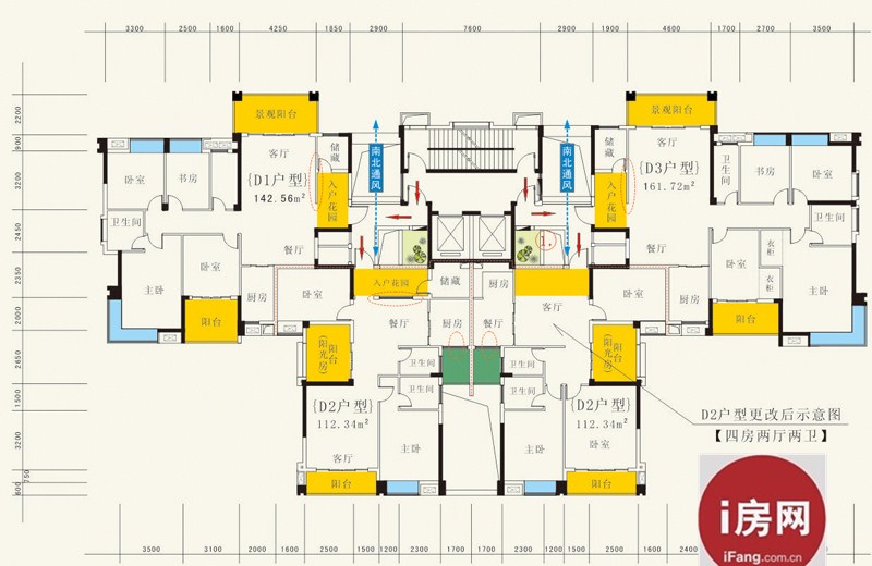 一期开发的是B区,B区是由8栋29+1、31+1的高层构成的商住楼,总户数876户,地下室车位配比大于1:1,中庭花园面积达到了14880㎡。目前户型有96.3-116.27平方米的二房、130平方米的三房、143.05-161.72平方米的四房。